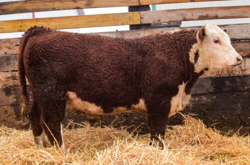 This two-year-old bull is a unique opportunity. He is the only natural-born calf out of a highly valued Lowen Genesis daughter we purchased from Churchill Cattle Co. as a yearling. Unfortunately, she succumbed to an illness during the summer after this calf was born. Being a March calf and dealing with a sick mother, we decided to hold him back and not offer him for sale last year. But boy, has he really come along since then. He does a lot of things right, and his WW and YW EPDs are in the top 20% of the breed. He will make a great choice for mature cows.