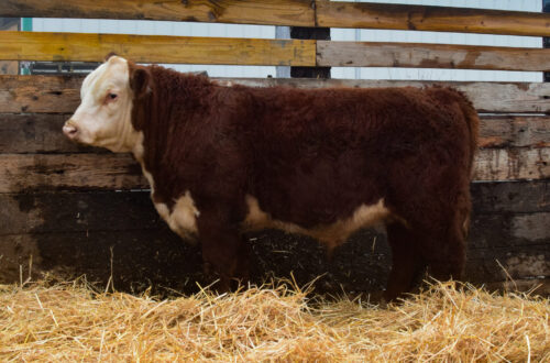 This bull is something special. We used him last year as a clean-up bull for several of our AI cows, and we’re looking forward to the calves that he will produce. He is a Red Thunder son out of a Long Haul daughter we purchased from Churchill’s two years ago. He is extremely deep and wide made with a straight top and good structure to go with it. His EPDs are impressive as he has 11 traits in the top 25% of the breed and 8 in the top 10%.